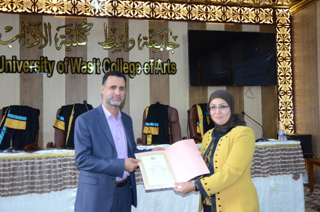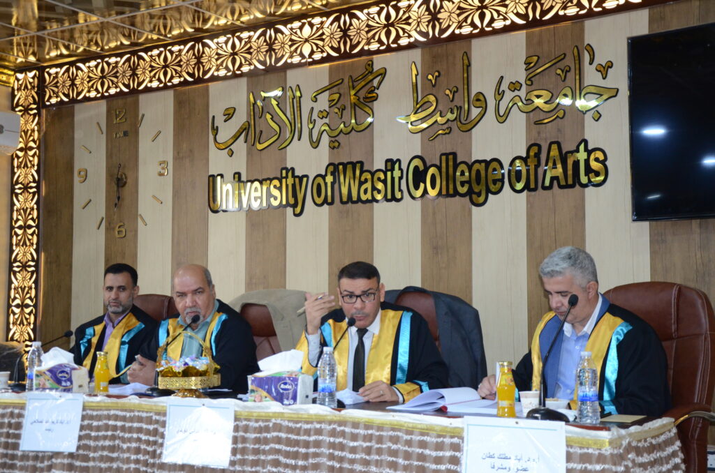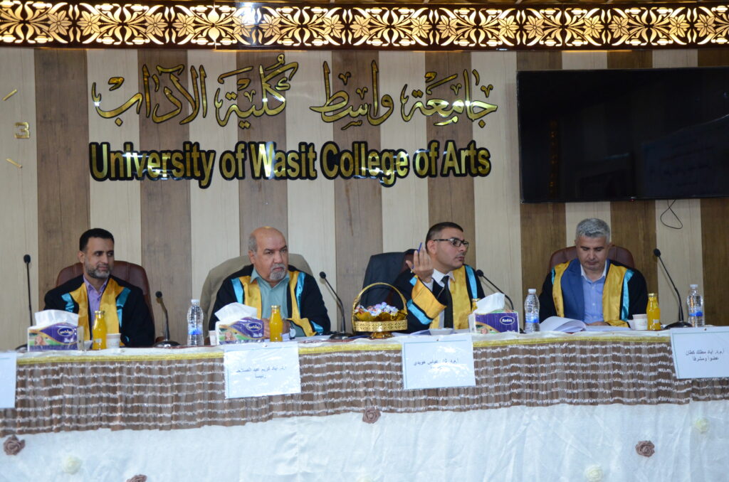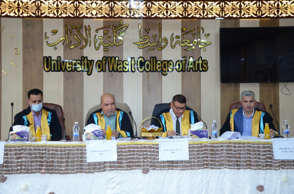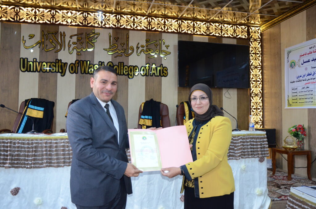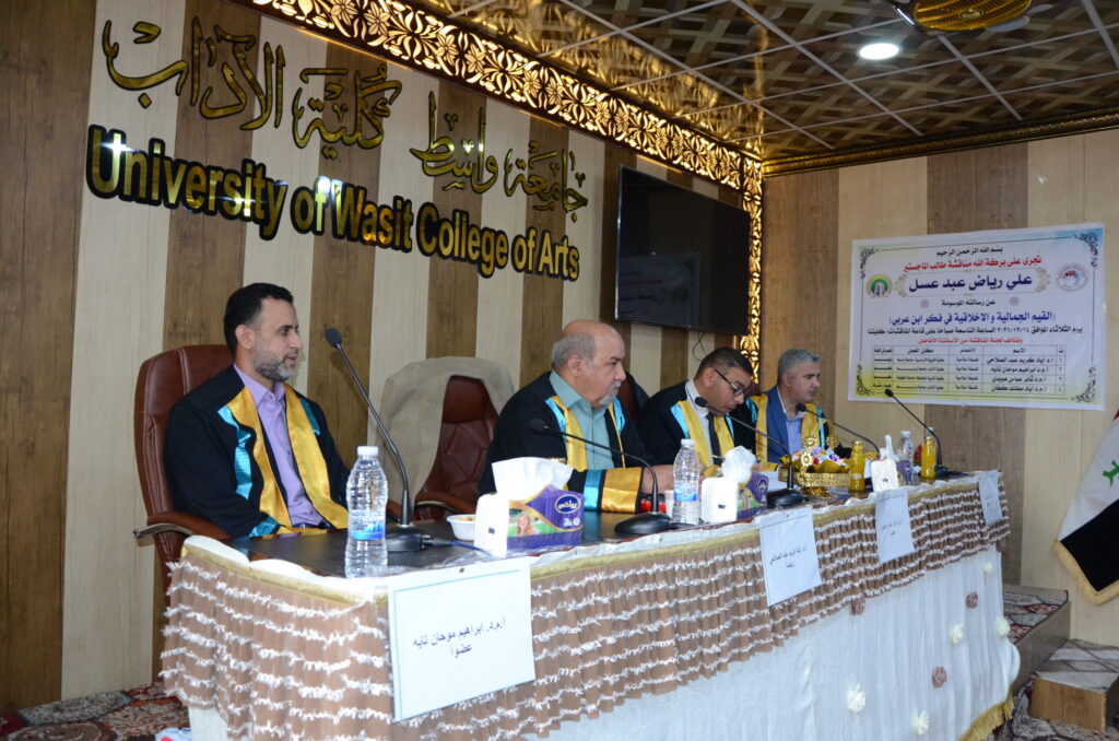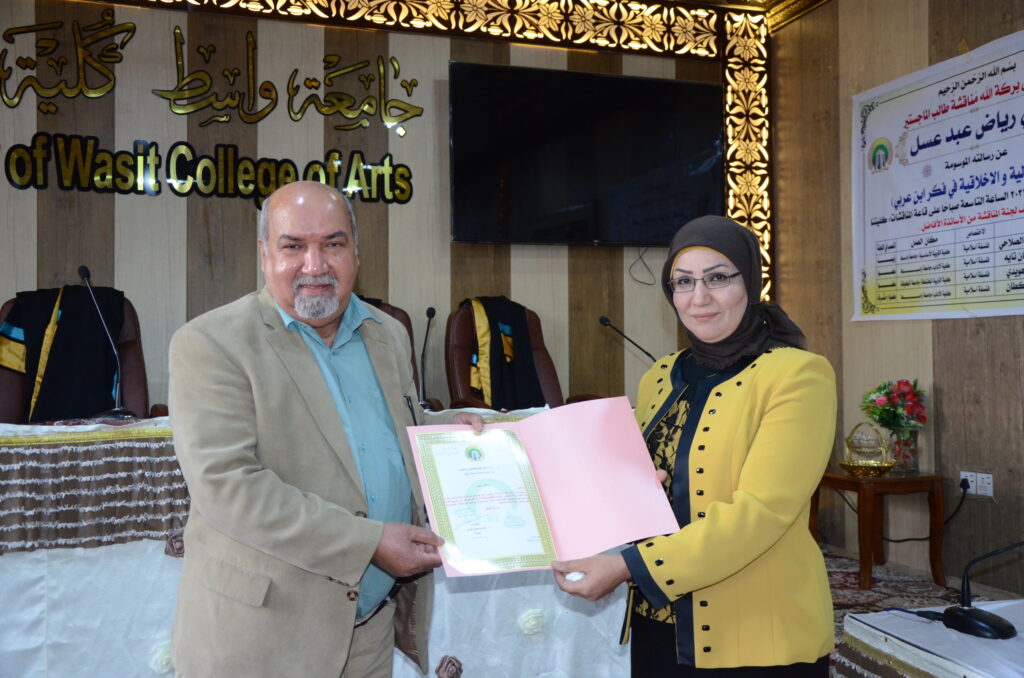 ناقشت كلية الآداب بجامعة واسط رسالة ماجستير بعنوان: (القيم الجمالية والأخلاقية في فكر ابن عربي (رسالة تحليلية).