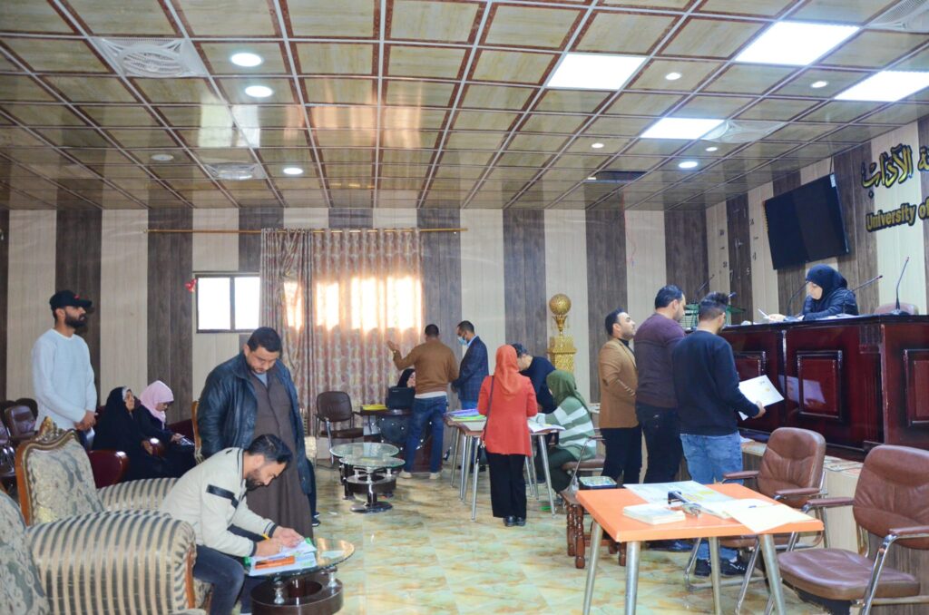 باشرت كلية الآداب يوم الأربعاء و الخميس و الاحد الموافق 14-15-19/ 12 /2021 بتسجيل الطلبة الجدد المقبولين فيها للدراسة الصباحية للعام الدراسي 2021-2022 . وبيّنت السيدة عميدة كلية الآداب الأستاذة الدكتورة فداء المولى و معاون عميد الكلية للشؤون العلمية و الاداريه الدكتور رعد العتابي و الأستاذ الدكتور فهد عويد أن عمادة الكلية قد أكملت جميع استعداداتها لاستقبال الطلبة الجدد ، إذ شكلت لجاناً للتسجيل والقبول برئاسة معاون العميد للشؤون العلمية وعضوية مدير شعبة التسجيل ومسؤولي وحدات التسجيل فضلاً عن موظفي الشعبة القانونية و الحسابات. وتم تعريف الطلبة بالضوابط الخاصة بالتسجيل والقبول وكيفية ملء الاستمارات الخاصة بالقبول من قبل اللجنة التي شكلتها عمادة الكلية لهذا الغرض .