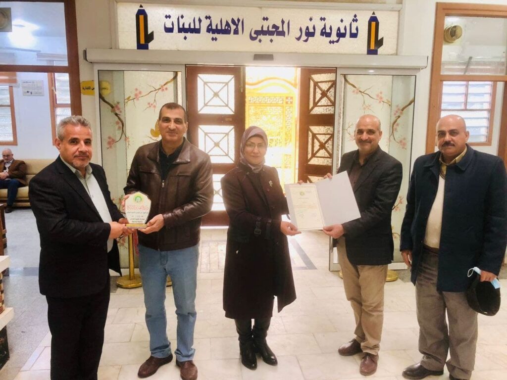 ضمن سلسلة الزيارات الميدانية للمدارس وتأكيدا لمبدأ الجامعة المجتمعية زارت السيدة عميدة كلية الآداب الدكتورة فداء المولى بصحبة السيد المعاون الأداري د. رعد العتابي و الأستاذ د. جميل محسن ثانوية نور المجتبى النموذجية الاهلية للبنات موجهة لأدارتها وكادرها كتاب شكر وتقدير ودرع التميز والأبداع لما يقدموه من جهد وإخلاص في تدريس ورعاية بناتنا علميا وأخلاقيا.